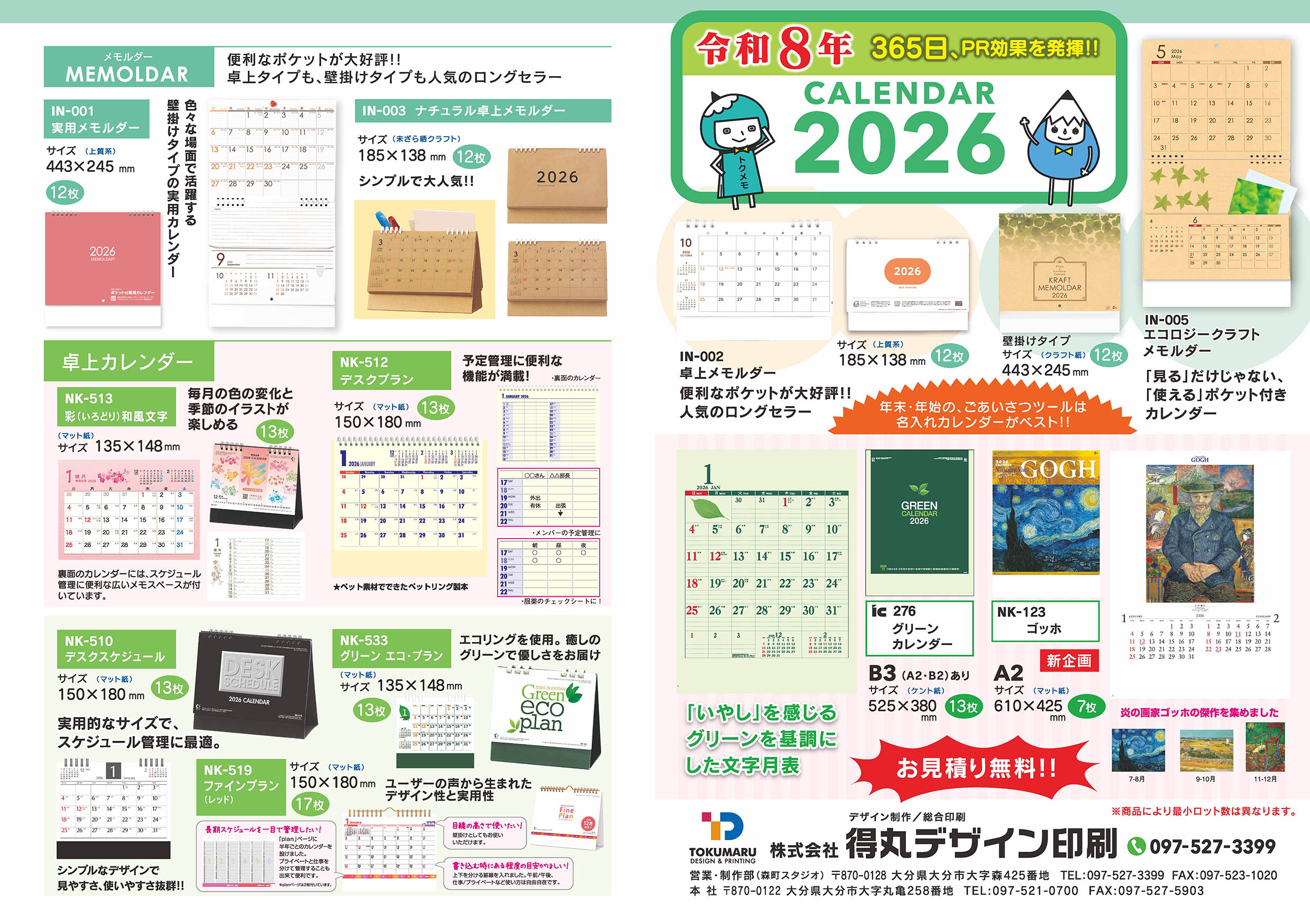 2026年(令和8年)の名入れカレンダーパンフレット出来上がりました。