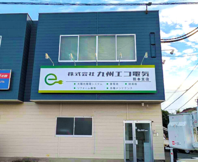 太陽光・蓄電池・エコキュート・リフォームなどを行われている「株式会社九州エコ電気」様の熊本営業所のサインデザイン・施工をさせていただきました。